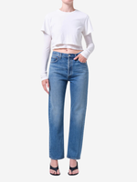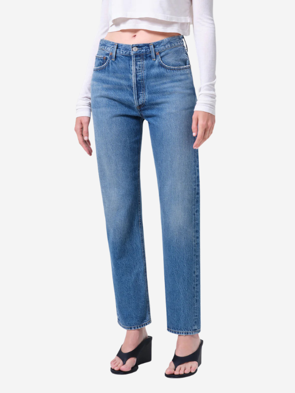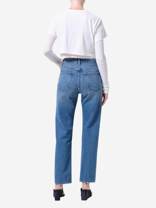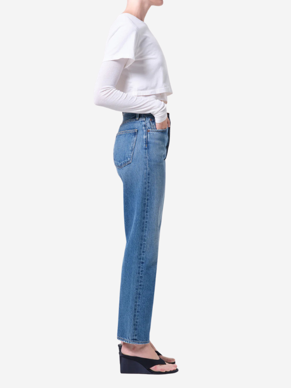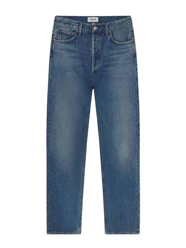 Agolde's 90’s Pinch Waist offers a clean, elongating silhouette with subtle modern detail. Designed in a dark tinted indigo wash with a refined hemline finish, this high-rise straight-leg style delivers a timeless yet elevated look. Crafted from non stretch, weightless regenerative cotton denim washed down for a super soft feel, it provides effortless comfort and drape while maintaining structure.