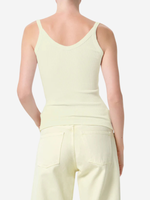 Agolde Jordan Tank in Lemon Drop from the back view, highlighting the smooth ribbed fabric and scoop/V-back style.