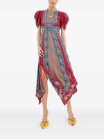 La DoubleJ's Cherie Scarf Dress is pure feminine fantasy. One of their fancier, form-fitting party pieces - slim in the top with a voluminous sleeve and a skirt that flows from the fitted waist like water, this beauty comes with a hand-placed print in 100% Italian silk. Not crazy about that thigh high slit? Close it for a more demure design, darling.