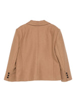Classic button row of the Mitch Fitted Jacket in Camel by THE GARMENT.