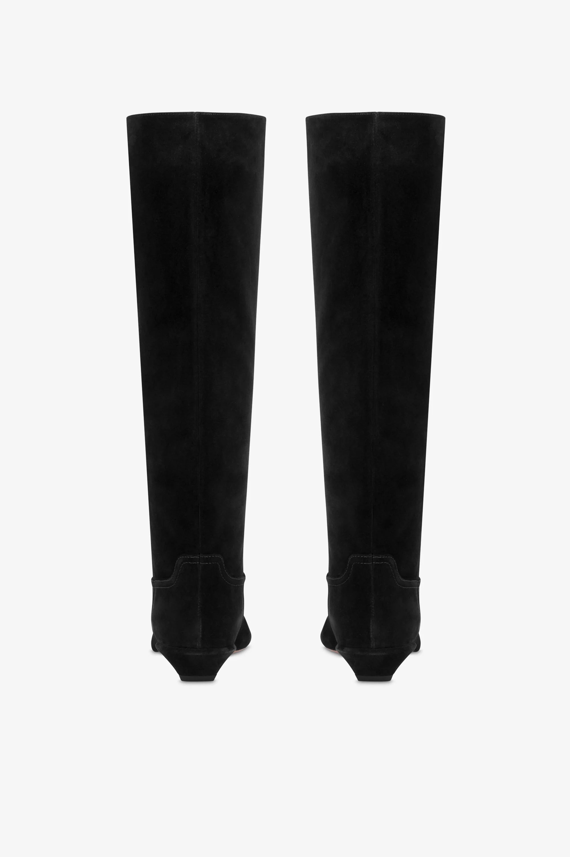 Side view of Bettina Boot in Black Suede, showcasing its sleek silhouette and comfortable heel height.