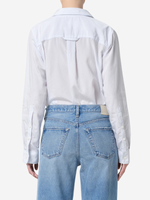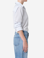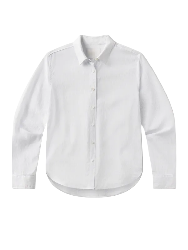 The Avni slim shirt by Citizens of Humanity is crafted from ultra-lightweight Italian shirting, offering a tailored silhouette that features a full button front and long sleeves, while light blue stripes add a sharp, menswear-inspired edge.