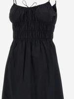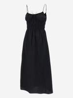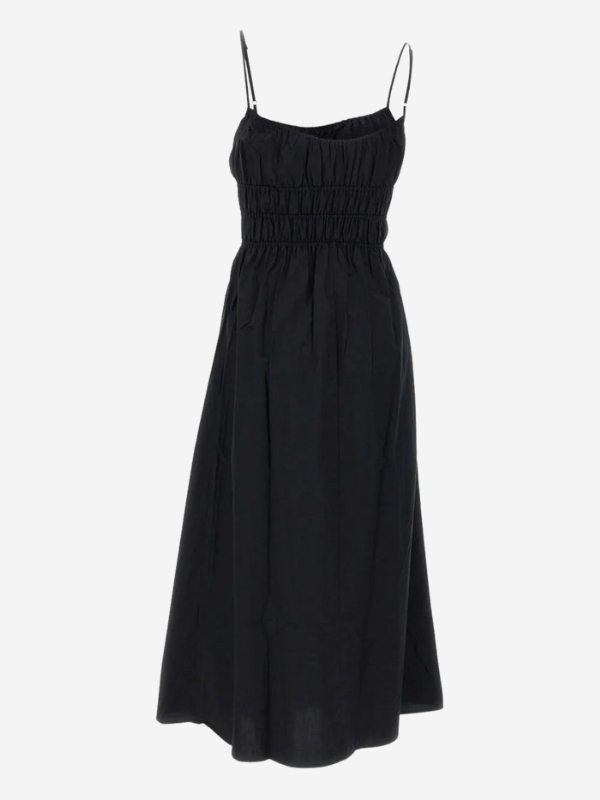 FAITHFULL'S Marianne is a vacation-inspired midi dress with a rounded neckline and thin straps, adjustable in length. It is gathered at the bust with a tie bow detail and then gathered through the waist with three tiers of stitching for a feminine touch. It falls into a soft A-line skirt that crops below the knee. Designed from 100% cotton, wear with a simple sandal for long lunches and aperitivo hours.