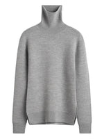 Close-up view of the High-neck Double Knit Sweater in Pale Grey Melange, highlighting the cashmere blend texture.