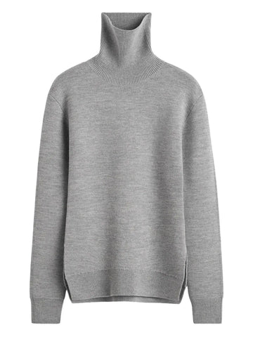 High-neck Double Knit Sweater in Pale Grey Melange