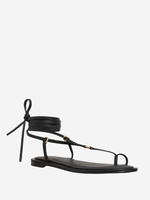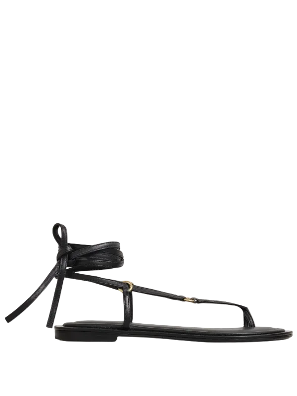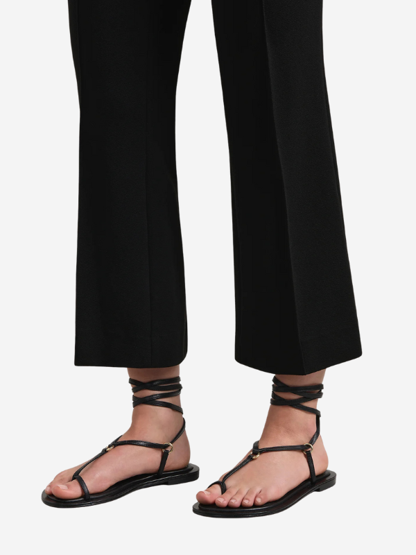 Elegant Tesni Sandal in Black by A.Emery designed with a single toe hold and a chic ankle wrap.