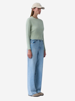 Alina Crew in Seaglass worn with denim, featuring an easy silhouette and stylish color.