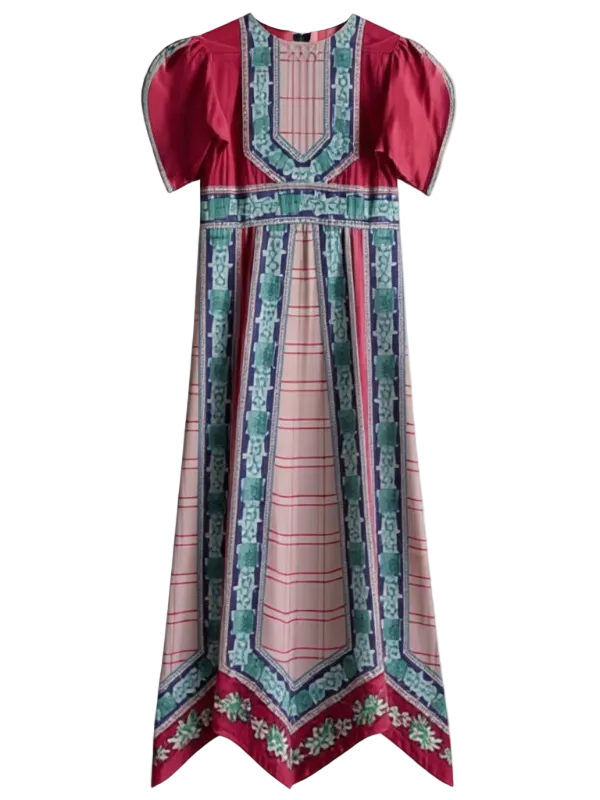 La DoubleJ's Cherie Scarf Dress is pure feminine fantasy. One of their fancier, form-fitting party pieces - slim in the top with a voluminous sleeve and a skirt that flows from the fitted waist like water, this beauty comes with a hand-placed print in 100% Italian silk. Not crazy about that thigh high slit? Close it for a more demure design, darling.