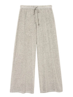 Manon Velour Pant in Heather Grey displayed on a neutral backdrop highlighting its soft velour fabric.