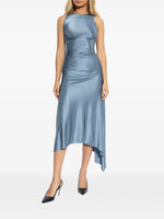 A high-shine stretch jersey and tactile ruching across the bodice bring a seductive undertone to Victoria Beckham's Twist Dress. Presented in subdued Stone, it has sensuous side seam splits, a directional asymmetric hemline and a twisted trim at the armholes.