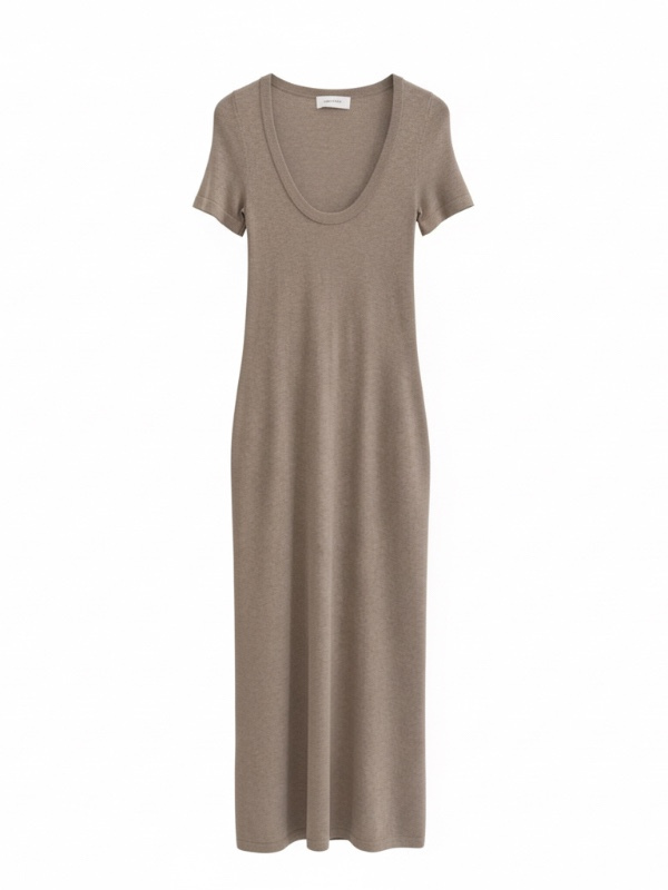 A draping silhouette, Lisa Yang's Minnie Dress is crafted in their fine knit cotton cashmere composition – a sumptuous take on jersey. The regular fit, maxi length silhouette features a deep scoop neck, short sleeves, a tubular hem and ribbed trims.