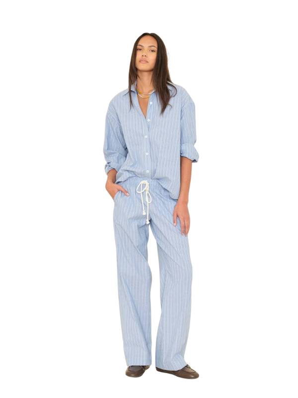 Brinna Pant in Chambray Teal Stripe
