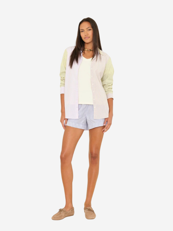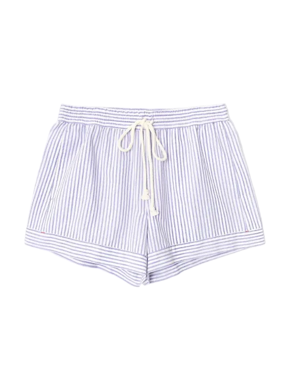 Gabby is new this season in Xirena's lightweight cotton stripe. This easy pull-on short features an elasticized drawstring waist and side seam pockets.