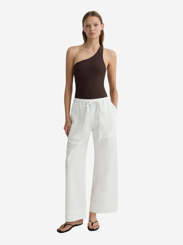 Model wearing the Kyoto Pant in White, styled with the matching Kyoto Cami for a trendy summer look.