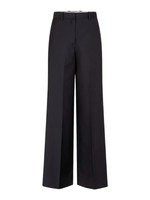 Flat lay of Valentina Trousers in Black, emphasizing the elegant silk and wool composition.