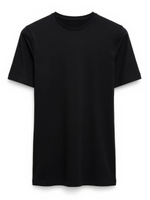Classic Jersey Tee in Black by TOTEME, featuring a slightly sheer design and longer length, made from 99% Viscose and 1% Elastane.