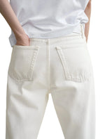 Back view of the Twisted Seam Full Length Jean in Off-white, illustrating how it fits and the style's modern look.