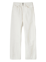 The Twisted Seam Full Length Jean in Off-white laid flat, emphasizing its unique twisted seam design and clean lines.