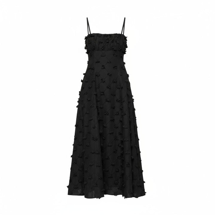 CLEA's Tahlia Dress is crafted from a lightweight cotton fabrication with beautiful drape and movement. The softly structured bustier features delicate ruching and gathering, balanced by widely set, fine, scrunched shoulder straps that extend into adjustable sliders for a custom fit. A softly curved bandeau-style neckline enhances the feminine silhouette, falling into a circular-cut skirt for a flattering, full-skirted shape. Intricate laser-cut embroidered flowers and diamond pintuck detailing offer rich texture and craftsmanship throughout.
