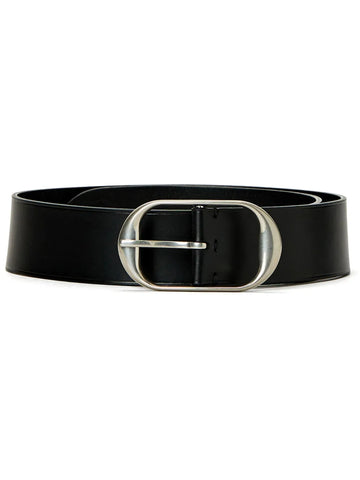 Nili's Belt in Black/Silver featuring a wide cowhide leather design and solid antique brass buckle in matte gold finish.