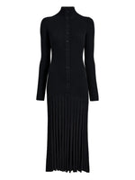 Proenza Schouler's Jada Dress in Superfine Merino is knitted to a slim silhouette with an adjustable button-front placket that can be worn open for a relaxed look or closed for a high neckline. Finished with a drop-waist skirt and a subtle high-low hem.
