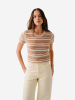 Sablyn's Jude is a short sleeve crewneck tee in cashmere with multicolor stripe.