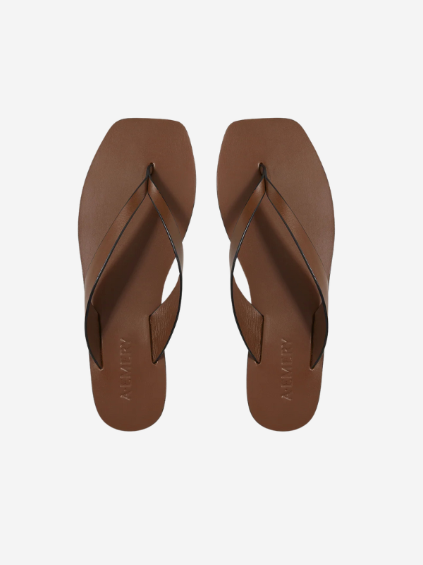 A. Emery's Kinto sandal is a modern flip flop that sits atop their classic square toe footbed.