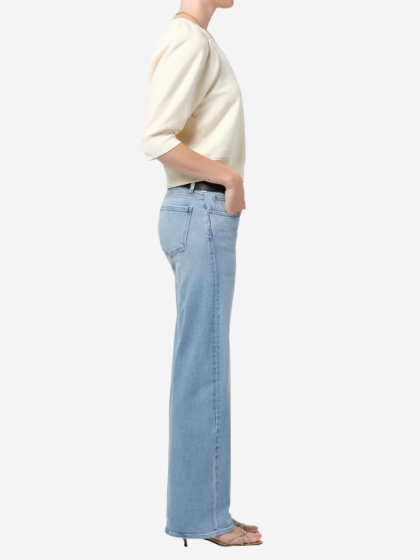 Side profile of the Nora Trouser in Bowery by Citizens of Humanity, emphasizing its elongated shape and chic design.