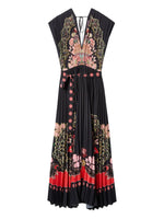 Close-up of Accordion Dress in Black by La DoubleJ highlighting the intricately crafted fabric and print details.