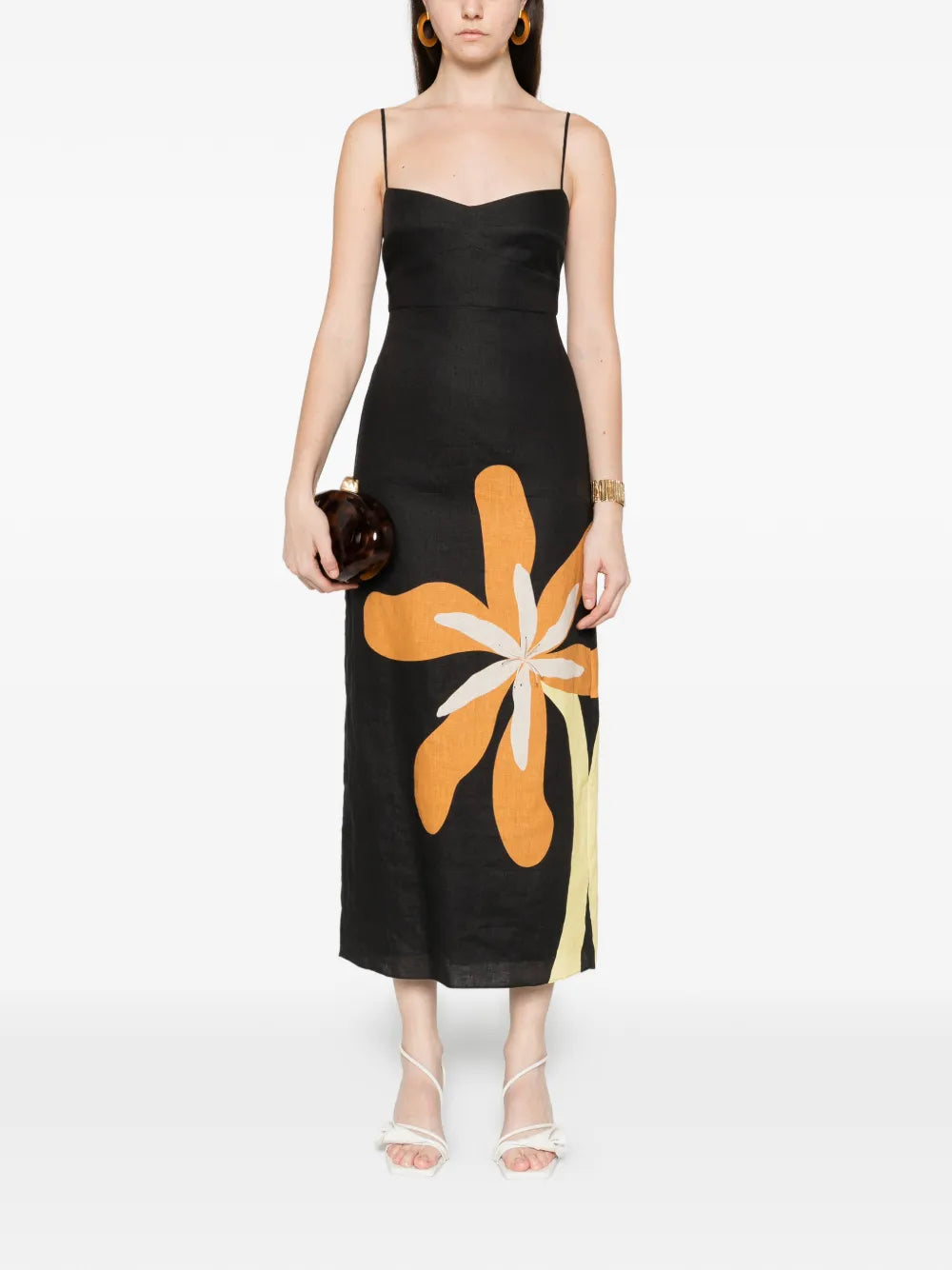 Detail view of the Paloma Dress in Cattle from Cala de la Cruz, featuring its luxurious linen fabric.
