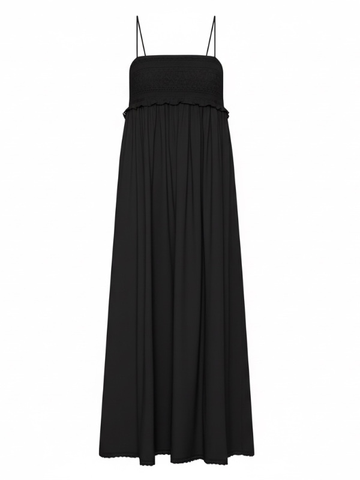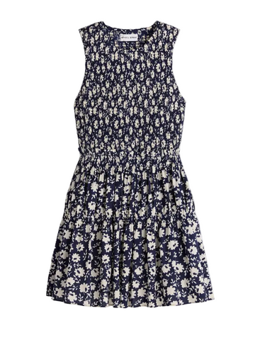 Lore Smocked Mini Dress in Navy Floral Stamp