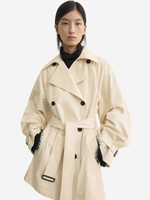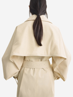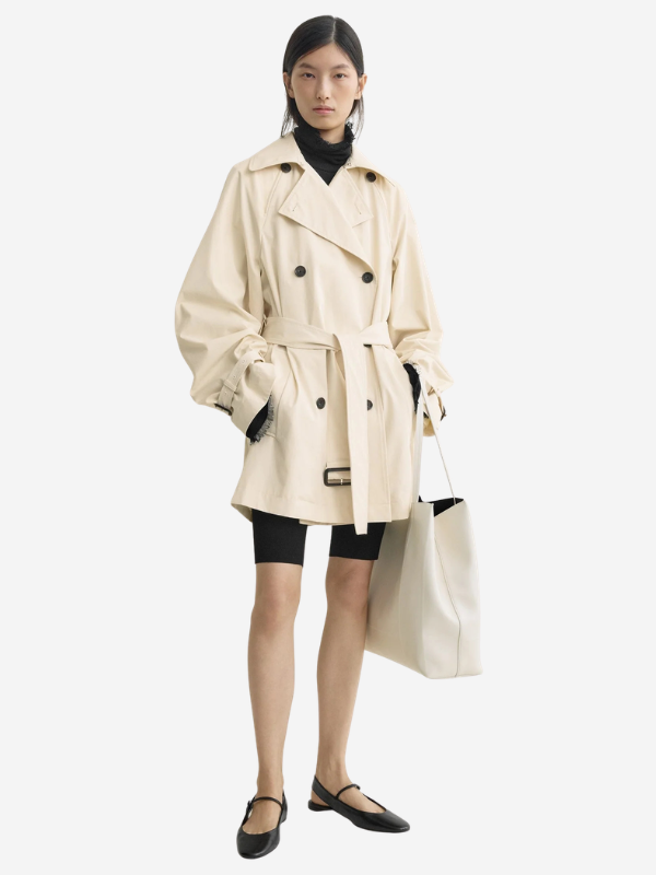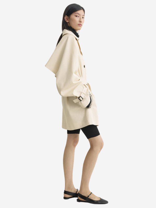Stylish Washed Cotton Trench in Stone, featuring exaggerated lapels and tonal belts by TOTEME.