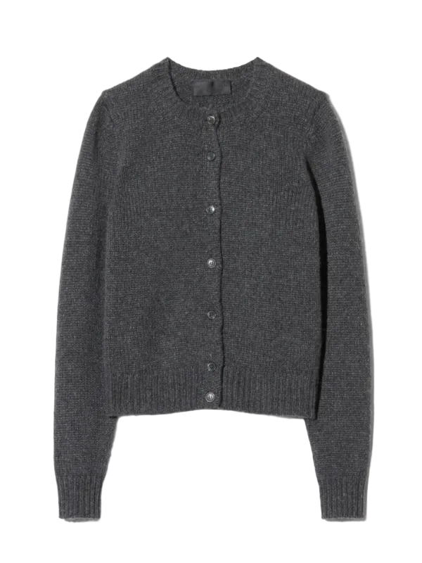 Saskia Cardigan in Charcoal by Nili Lotan, featuring a fully fashioned neck and sleeves, perfect for stylish layering.