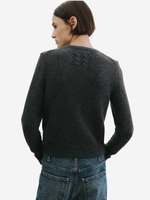 Saskia Cardigan in Charcoal from Nili Lotan, highlighting the luxurious Italian airspun cashmere and signature cable knit detail.