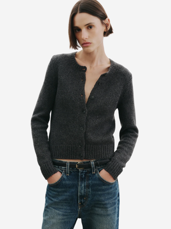 Charcoal Saskia Cardigan by Nili Lotan, emphasizing the softness and warmth of 100% cashmere in a modern design.