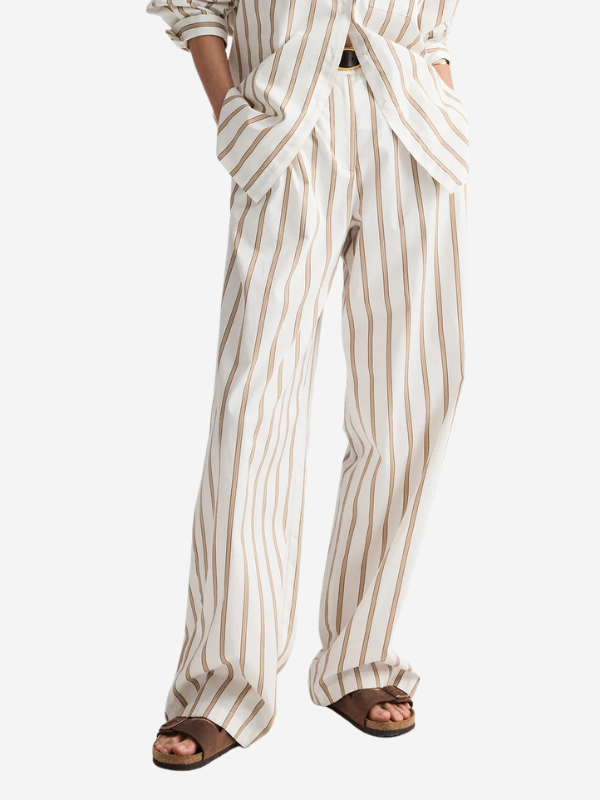 Close-up of Hudson Street Pant in White/Khaki highlighting the Superpop stripe pattern