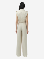 Close-up of the York Cropped Linen Vest in Sand, highlighting the quilted detailing along the back and stylish epaulettes.