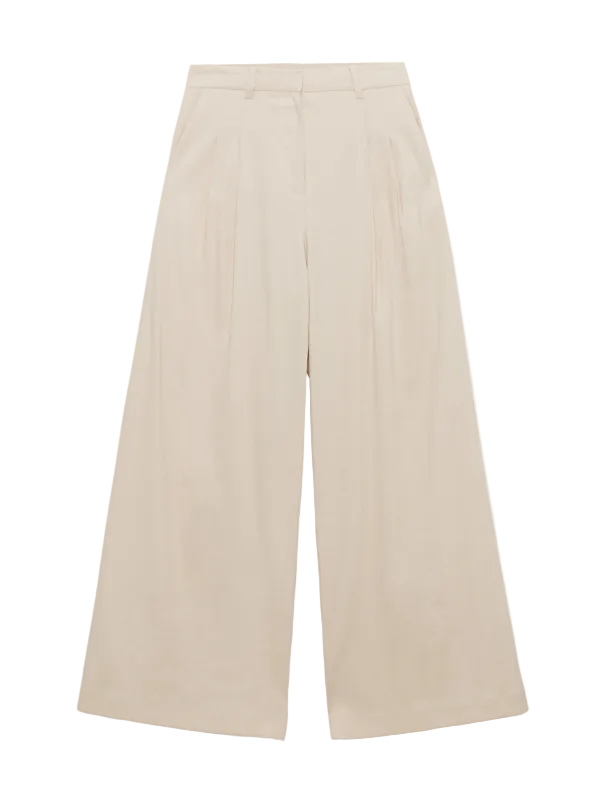 Crafted from linen, Simkhai's Ramsey Pant features a high-rise waist and full length wide leg for an elongated, fluid shape. Double front pleats add tailored structure with an effortless drape.