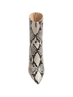 The Elsa Zipped Ankle Boot is a round-toe boot in printed python leather with a covered cone heel.