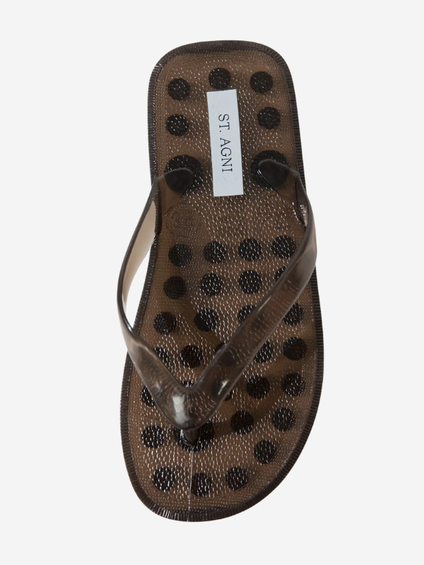 The Jelly Flip Flop by St. Agni is crafted in a semi-transparent finish, featuring slim straps and a circular footbed design. This Jelly Flip Flop is lightweight and versatile.