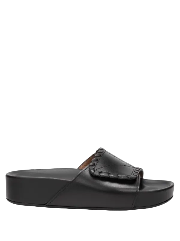 Elegant Novello Stitch Sandal in Black by ATP Atelier, featuring a stylish slip-on design with stitch detailing and a comfortable sole.