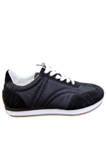 Close-up view of TOTEME Sport Sneakers in Black showcasing the comfortable foam midsole and stylish suede trim.