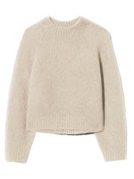 Nili Lotan's Tomaso is a heavyweight relaxed sweater. High, wide neck trim. Regular length body. Raglan arm hole. Fashioning along arm hole. Rib start at hem and sleeve. Signature center back cable knit detail.