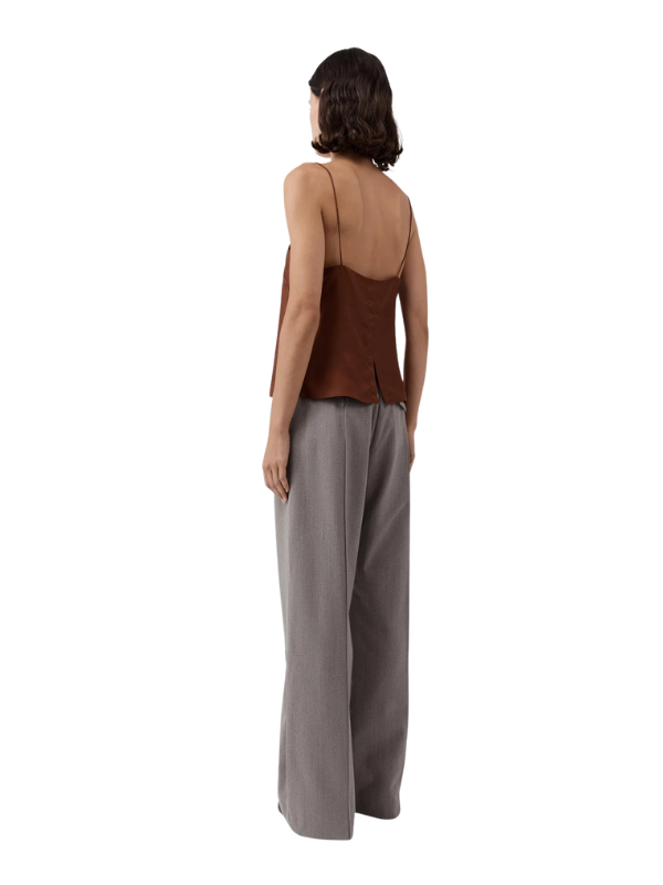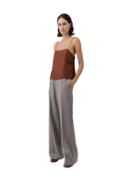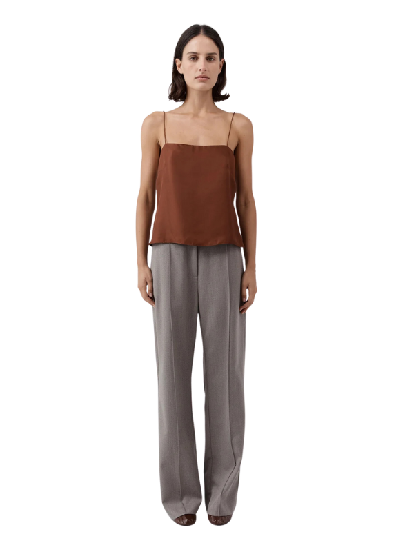 Model wearing the St. Agni 90s Silk Twill Cami in Brick, styled for a chic and timeless look.