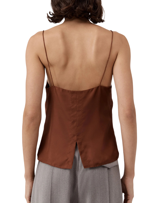 Back view of the St. Agni 90s Silk Twill Cami in Brick, highlighting the minimalist design and luxurious silk fabric.