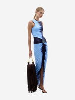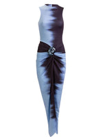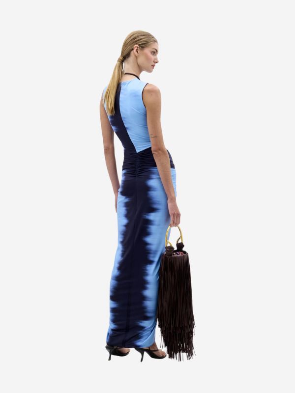 The Leni Dress from Silvia Silvia Tcherassi. This maxi dress features a twist detail and embellishment at waist and high slit.