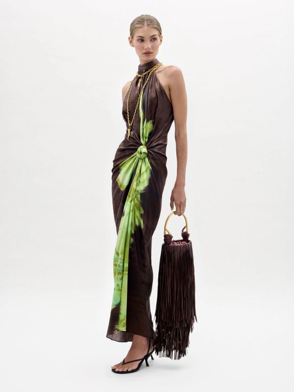 Silvia Tcherassi's  Tizziana halterneck maxi dress  features a draped knot detail at waistline and tie closure at neckline.