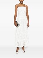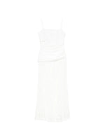 Close-up view of the Annalise Dress in White showcasing the intricate pleated lace details.