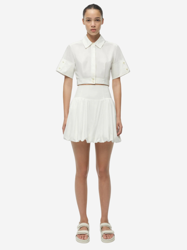 The Sabrina Top by Simkhai. This contemporary short sleeved cropped button-down offers a fresh take on classic tailoring.
