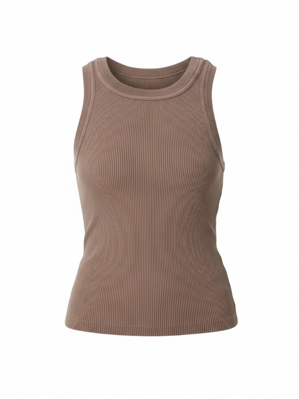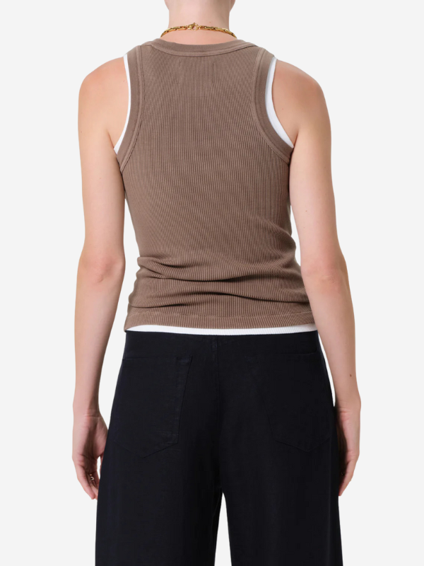 Back view of the Isabel Ribbed Tank in Cocoa illustrating the clean finish and modern design.